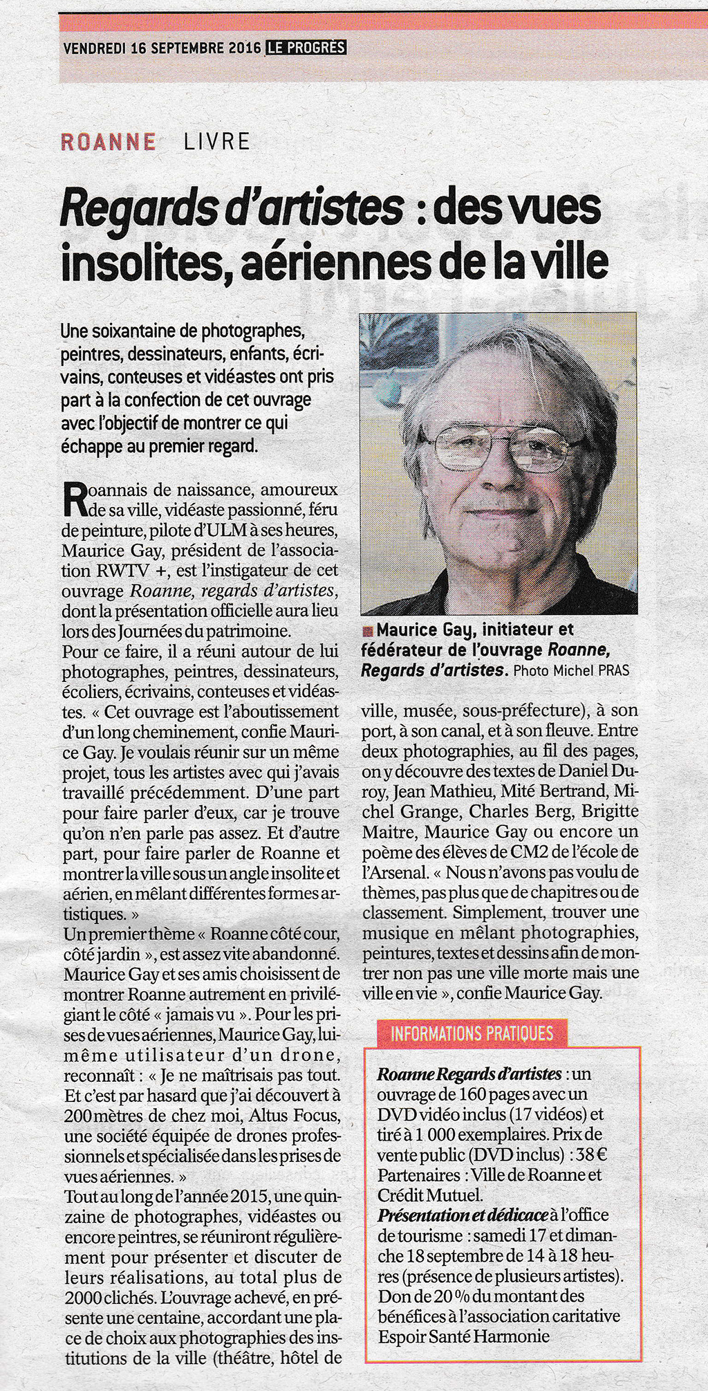Maurice Gay, président Association RWTV+, coordonnateur livre « ROANNE Regards d’Artistes » (2016).