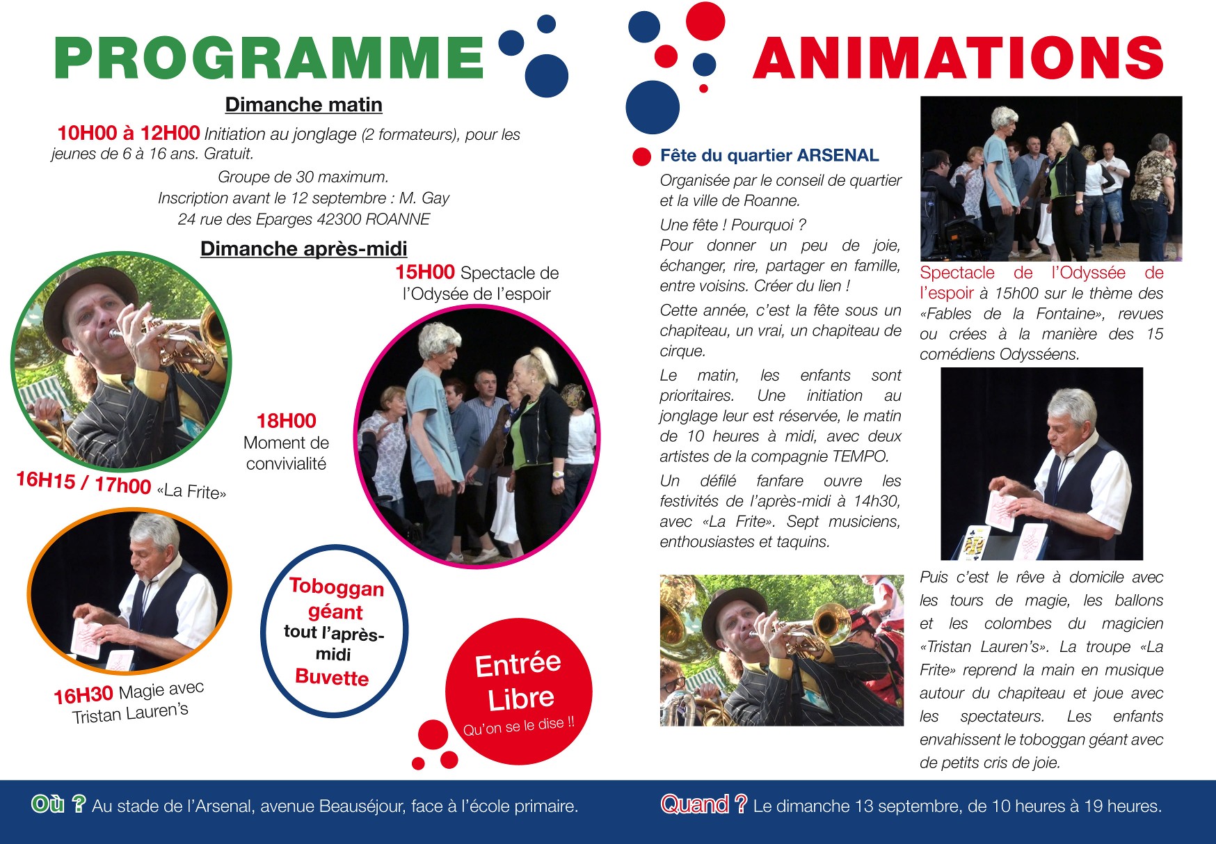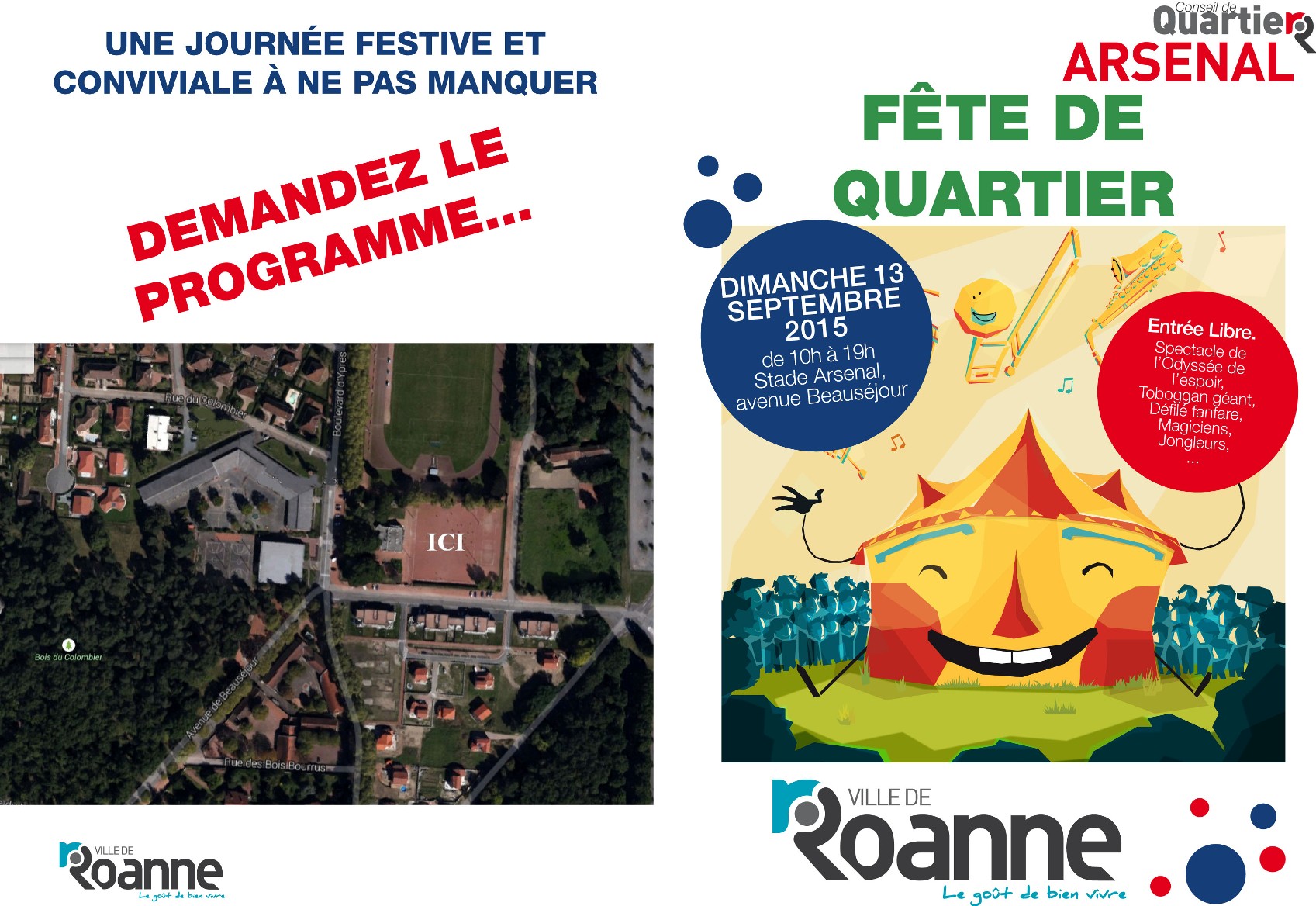 Présentation de la Fête du quartier Arsenal, le dimanche 13 septembre 2015 au stade de l’Arsenal, avenue de Beauséjour. Retenez ce jour et venez nombreux. L’entrée est libre..